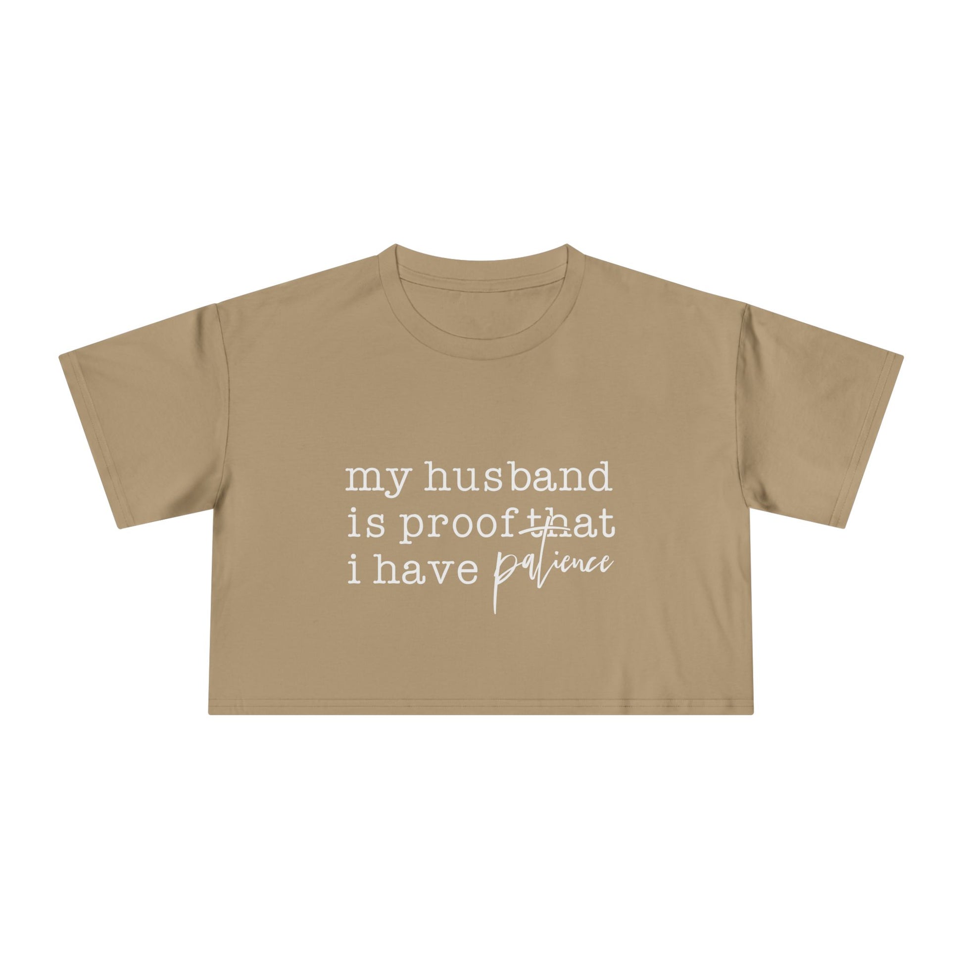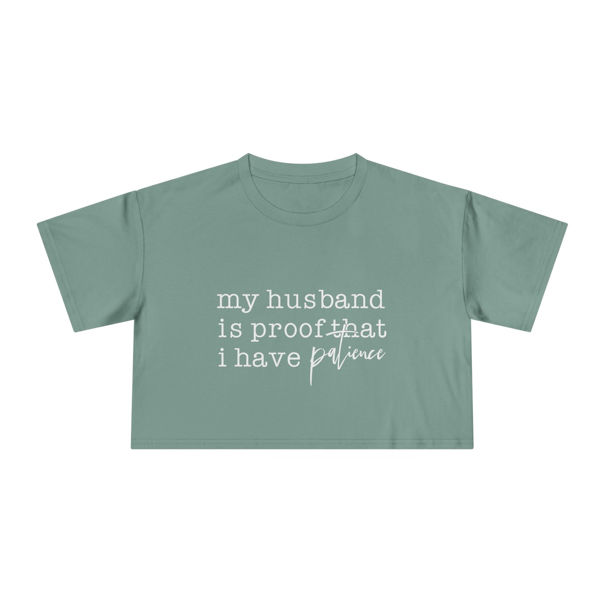 Crop Tee — “my husband is proof that i have patience” Funny Wife Shirt, Couples Gift, Casual Everyday Crop Top
