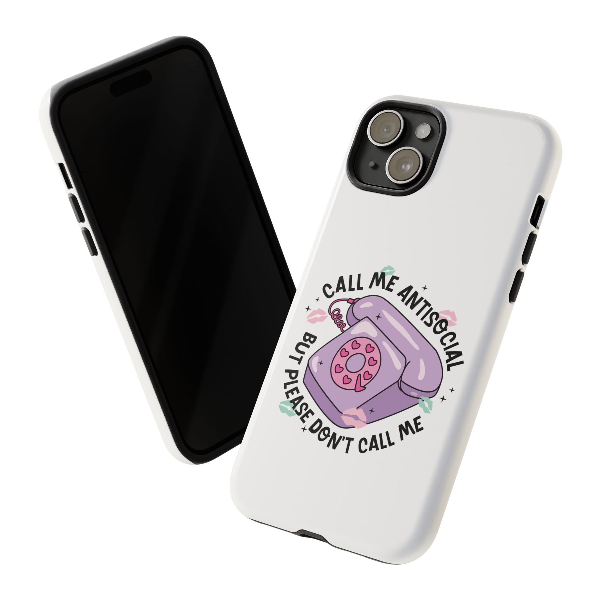Slip on a layer of sly humor and gentle protection. This slim, dual-layer phone case wraps your device in glossy white with a pastel vintage rotary and the cheeky line, “Call me antisocial but please don’t call me.” It feels light in the hand, with a soft TPU liner that soaks up shocks and a rigid polycarbonate shell that resists dents and scratches. The design’s full-coverage 3D wrap keeps the artwork vibrant outdoors, while clear port cutouts keep charging and headphones effortless. For people who love low-key sarcasm and soft, kawaii-inspired vibes, this case shields your phone without shouting for attention.